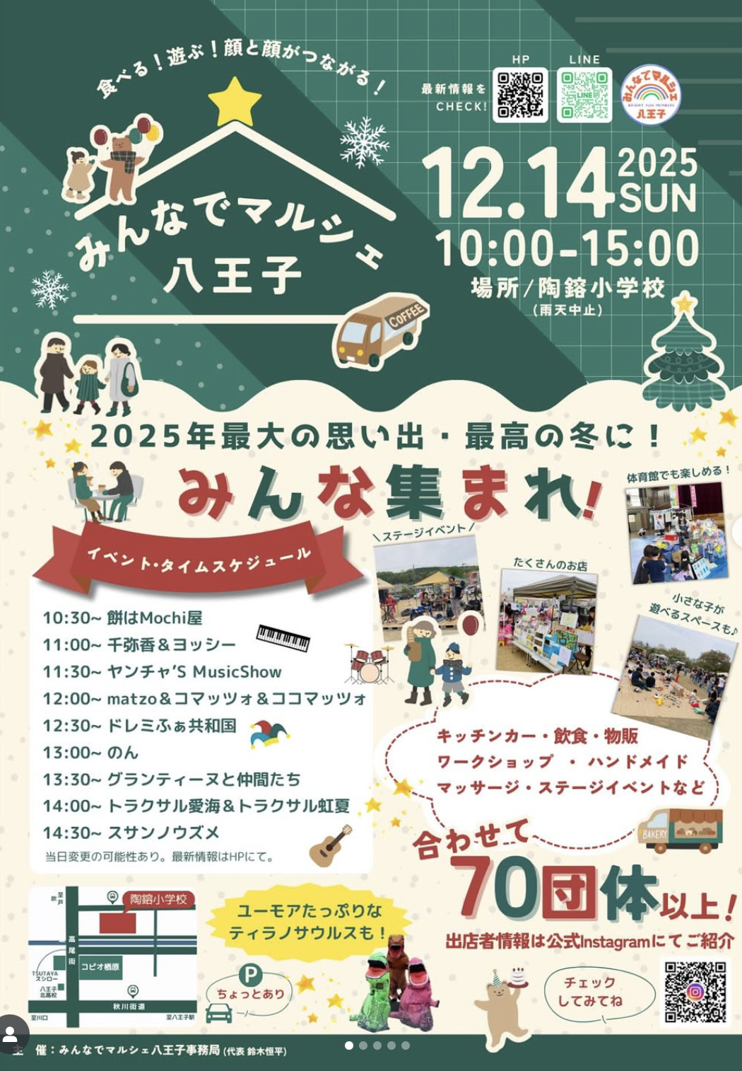 「みんなでマルシェ八王子2025冬」は、”地域とつながる”、”人と出会う”、”温かい冬のマルシェ”がテーマの、イベントです。