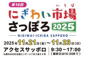 にぎわい市場さっぽろ2025(11/21〜11/23・アクセスサッポロ開催)今年も開催します。イベントの見どころや楽しみ方、公共交通のアクセス、駐車場、公共交通機関での行き方など、イベント当日に知りたい必須情報をまとめて解説します。