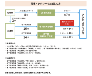 昨年は地下鉄大谷地駅からアクセスサッポロ間まで無料シャトルバスが運行していましたが、今年はまだ情報が未定です。分かり次第またお知らせいたします。